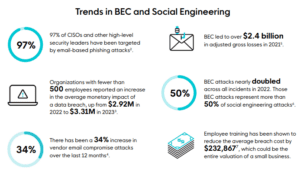 organizations experienced an attempted BEC attack in the past year. These attacks often result in significant financial losses, with the average cost of a successful BEC scam reaching $4.67 million. The rise of remote work and advanced social engineering tactics have made these scams even more challenging to detect and prevent.